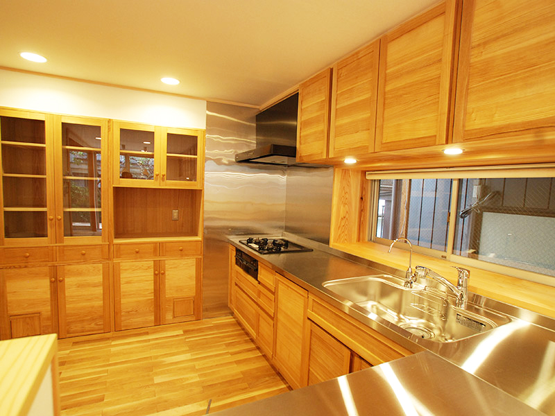 外観は現代的な片流れ屋根。家の中心には、大黒柱と開放的な吹き抜けがあります。